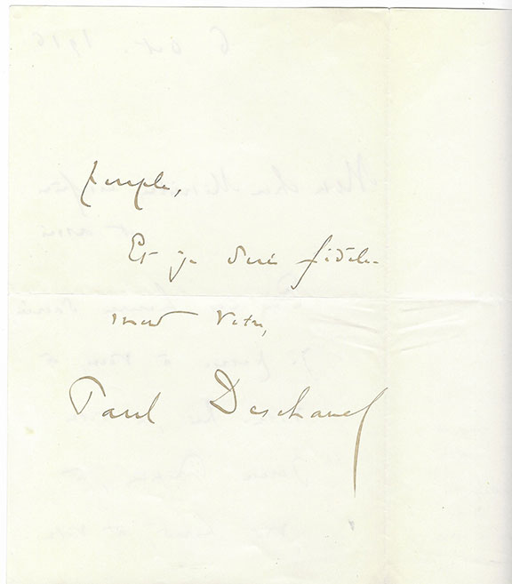 DESCHANEL, Paul (1855-1922). President of France. For many years he was an important political leader. Autograph letter signed, one and a half pages to Dr. Milenko Vesnitch of the Serbian Legation to France. This letter assures that he will pass on information and sends good wishes. Fine.....................$125.00![]() ![]() |