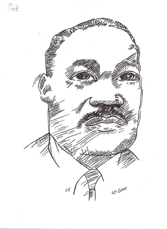 Original black ink drawing of the face of Martin Luther King, Jr. Full face, head and partial shoulders pose. Measures 8.5”x11”. Signed “C.M. Gary.” In very good condition...$95.00