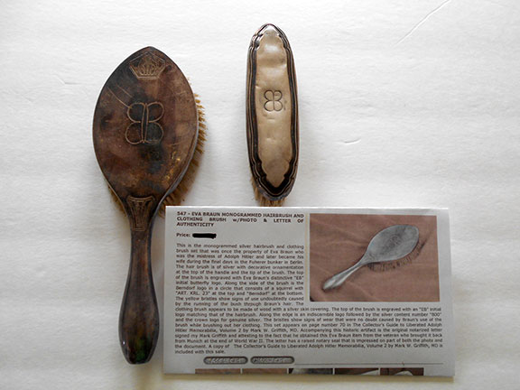HITLER, Adolf (1889-1945). German politician, leader of the Nazi Party. Chancellor of Germany (1933-1945). Fuhrer of Germany (1934-1945). He initiated WWII in Europe. Committed suicide in his Berlin bunker by a gunshot to his head. He was only 56 years old. Our latest Limited Edition Collector’s card. Card 8, in Series #3 of 100 numbered and hand signed collector’s cards created by Stephen Koschal. A very attractive card stock card measuring 8.5”x11”, printed in color and contains a strand of hair from Hitler’s sterling silver, monogrammed hair brush. In mint condition and rare.
