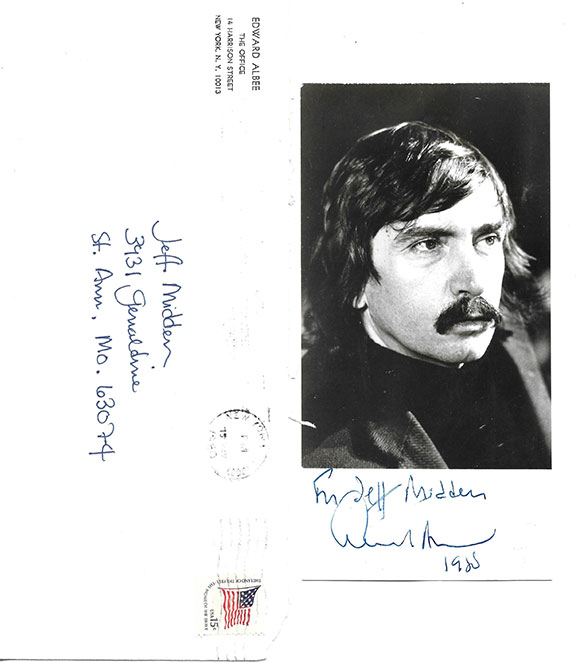 ALBEE, Edward (1928-2016). American playwright, winner of three Pulitzer Prizes. Best known for Who’s Afraid of Virginia Wolf. Photograph, head and shoulders pose, B&W, measures appx. 3.5:x7”. Inscribed and signed and dated “1980” on the lower white margin. Together with the original envelope.....$57.50![]() |