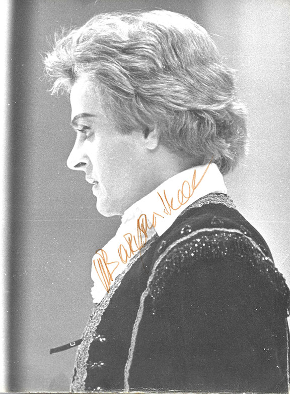 BARYSHNIKOV, Mikhail (1948- ) Russian-American dancer, actor. Preeminent male classical ballet dancer of the 70s and 80s. Photograph, 8”x10”, close-up profile pose. Elegant image, boldly signed on the light portion of his collar. Photo by Pia Holm and from the Arthur Todd collection, In V/G-Fine condition.....$175.00![]() |