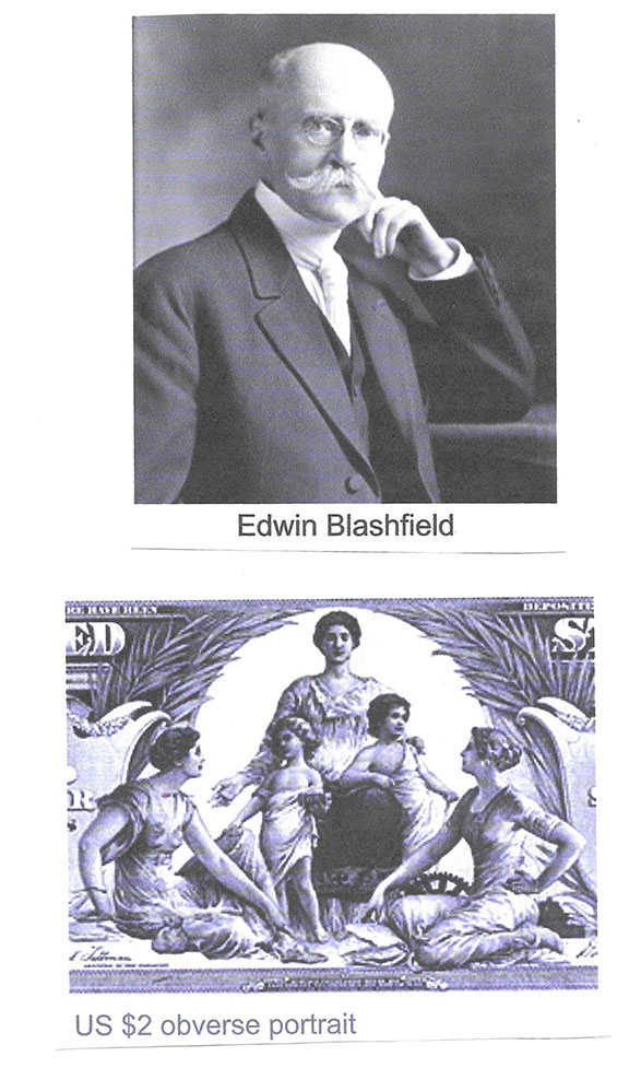 BLASHFIELD, Edwin Howland (1848-1936). Great American artist noted for many important works including the great central dome of the Library of Congress, the New York Waldorf Astoria ballroom ceiling, parts of the Capital Building. Known as the “Dean of American Muralists.” Winner of many awards. Autograph letter signed, one page, Dec. 23, 1893 to Miss Atherton Pond. He writes in part: “Thanks for your check for eighty-seven dollars....payment for lecture. And at the same time let me thank you for your hospitable reception of me in Washington. The visit is a very pleasant memory. Sincerely, Edwin Howland Blashfield.” Anything signed by Blashfield has become rather scarce and to find his signature signed in full is extremely desirable. In fine condition .............$150.00