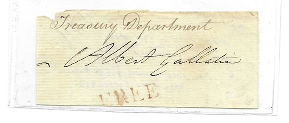 Free Frank of Albert Gallatin, Secretary of the Treasury