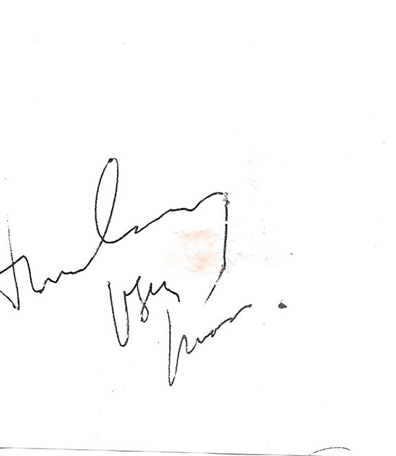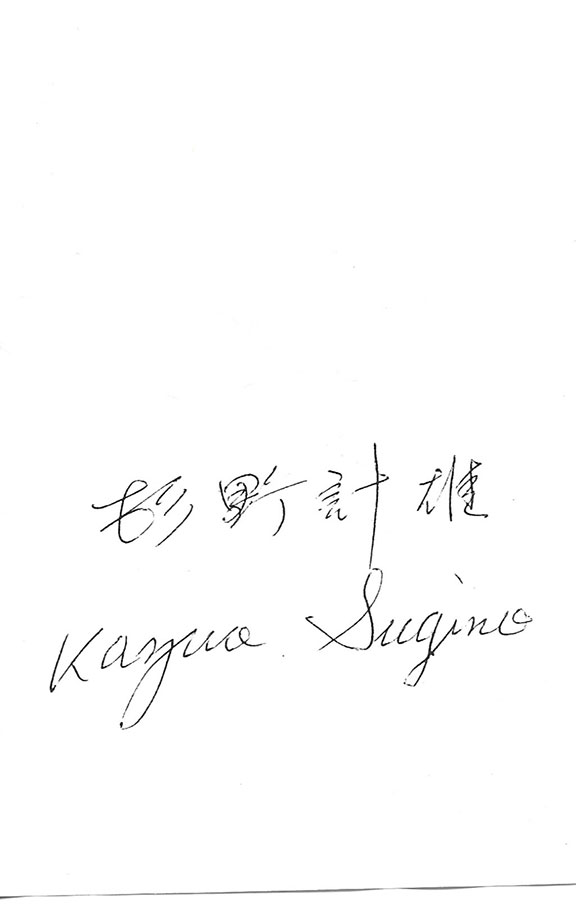 KENNEDY, John F. (1917-1963). 35th President of the United States (Jan 20, 1961- Nov.22, 1963). SUGINO, Kazuo (1921-1999) Japanese aviator, fighter Ace of the Japanese Imperial Navy during WWII. High scoring Ace credited with 34 victories. He was a member of the Taichung Fighter Corps Suicide Squad. On a slip measuring appx. 3”x5” Kennedy has signed his name adding U.S.S. (United States Senator) and the word Mass. There has been a little restoration at the ending of the “y” in Kennedy. Attached was a bit of black construction paper that need to be removed. There is a light pink stain near the bottom of Kennedy, otherwise in V/G/ condition. Interesting on the verso is a signature of Japanese Ace Kazuo Sugino where he signed his name twice, once in English and the other in Japanese...........................$795.00 ![]() ![]() |