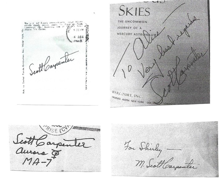 Below are four illustrations of genuine signatures of Scott Carpenter.