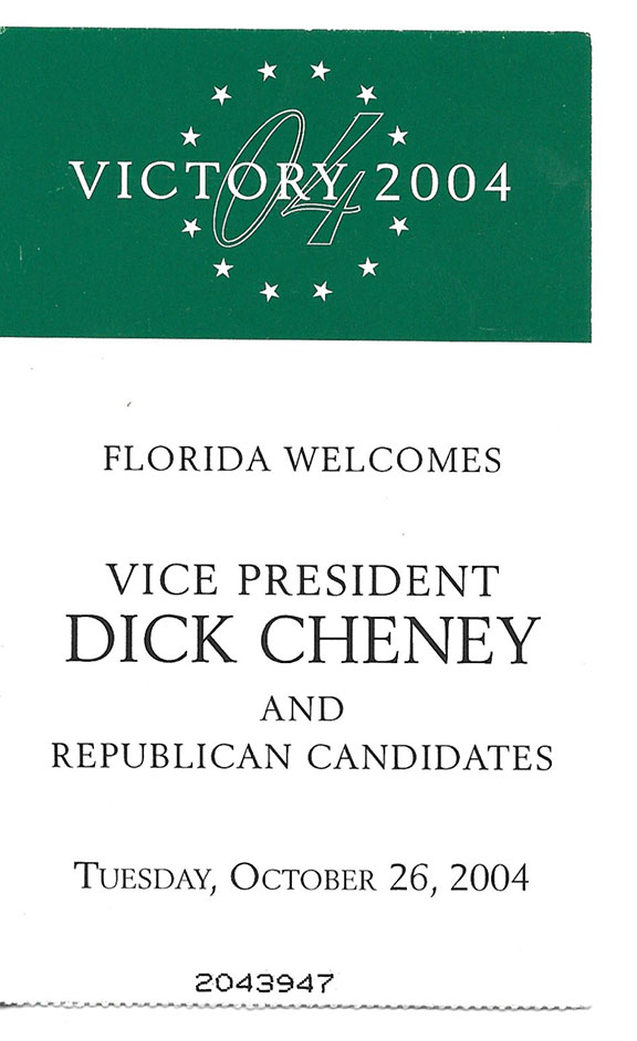 The day arrived that Cheney was to arrive and I was successful getting a ticket to the event. See illustration below.