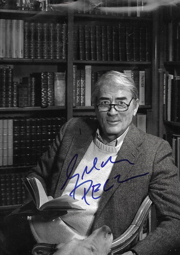 PECK, Gregory (1916-2003). American actor and social activist. Leading and one of the most popular male actors of the 40’s to the 70’s. Voted the 12th greatest film stars. Won an Academy Award for his part in the classic Hollywood film To Kill A Mockingbird. In November 2005, his star from the Hollywood Walk of Fame was stolen. It has since been replaced. Photo page, 11”x14” B&W, sitting in his library, petting his dog. A wonderful image.............$95.00