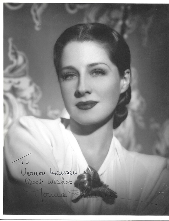 Shearer began her acting career in silent films after relocating to New York City in the early 1920s. She signed with Metro-Goldwyn-Mayer (MGM) and quickly became one of the studio’s most prominent stars. Transitioning successfully to sound films, she gained early acclaim with The Divorcee (1930), which earned her the Academy Award for Best Actress. Shearer starred in several major MGM productions, including A Free Soul (1931), Strange Interlude (1932), The Barretts of Wimpole Street (1934), Romeo and Juliet (1936), and Marie Antoinette (1938). For her work in these films, she received five additional Academy Award nominations. Her final film role was in Her Cardboard Lover (1942), after which she retired from acting. Shearer was married to MGM production head Irving Thalberg from 1927 until his death in 1936. Photograph of Norma Shearer, B&W, 8”x10”, head and shoulders pose. Inscribed and signed: “To Vernon Hansen Best wishes Norma Shearer.” From the Vernon Hansen collection. In V/G condition.............$325.00 ![]() |