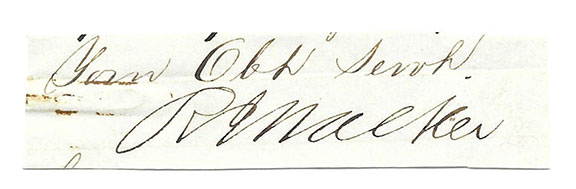 WALKER, R.J. (1801-1869) 18TH Secretary of the Treasury (1845-49) under James Polk. 4th Territorial Governor of Kansas May 1857-December 1957. He financed the Mexican-American War and drafted the 1849 Bill to establish the U.S. Department of Interior. His portrait is on the 5th issue 25 cent fractional currency note. On a slip is written “your Obd Servt” and signed R.J. Walker...........$35.00![]() |