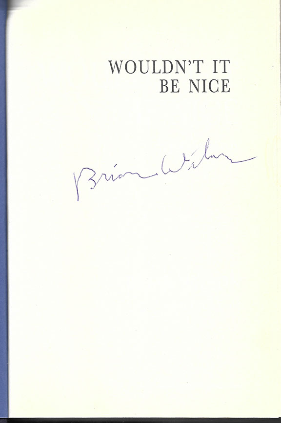 WILSON, Brian (1942-2025) American singer, songwriter co-founder and creative genius of The Beach Boys. At one time thy were considered the most popular rock group in the world. His book: Wouldn’t It Be Nice, My Own Story. Harper Collins, 1991, First Edition, First printing. Three hundred ninety-eight pages with illustrations. Signed with a desirable genuine signature on the half title page. Throughout the years his autograph has been forged. In V/G to Fine condition along with the dust jacket................$150.00