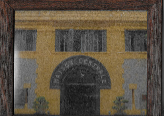 c) A fabulous piece of art, measuring 8”x10” in color of the entrance to Hoa Lo Prison made entirely of grains of rice. Attractively framed. A museum piece.