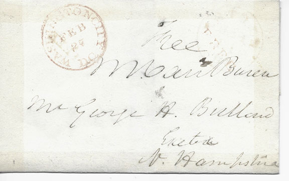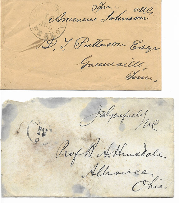 The second cover, free franked by John Hay and is in V/G. condition. It is made out to Miss Alice Huntington c/o Geo. L. Huntington Esq. Springfield, Illinois. Red wax seal on the reverse. Hay was officially employed as a clerk in the Pension Office, which function he never practiced. On this cover he has struck out the printed “Priv.” and substituted “Ag” for “Acting.” A remarkable and scarce pair of free franking covers which originally sold in 2015 for $2,500. Our price. $695.00