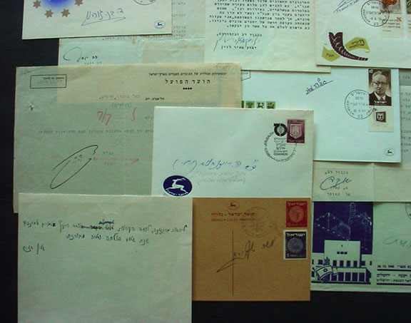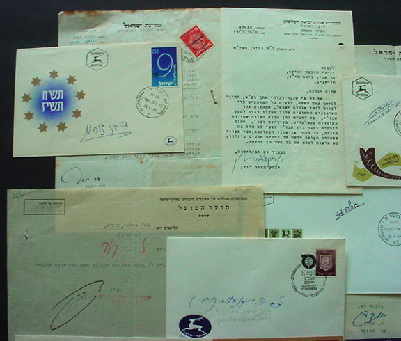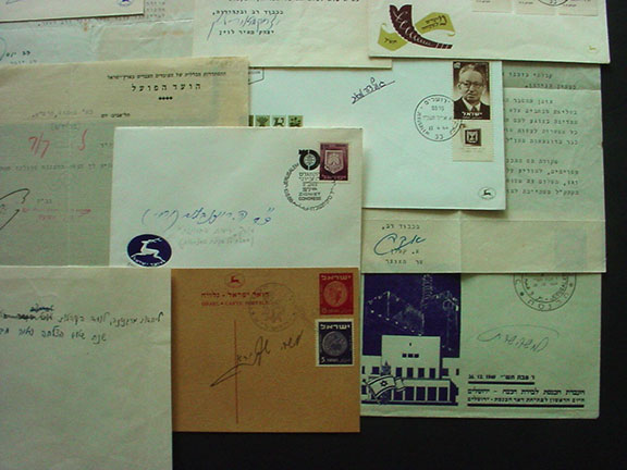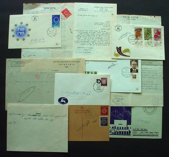 Moshe Sharett (Shertok), Minister of Foreign Affairs. Uncommon Israeli cover, stamp cancelled 12/26/1949 at Jerusalem. Signed in Hebrew. The collection is in fine condition..............................$2,750.00