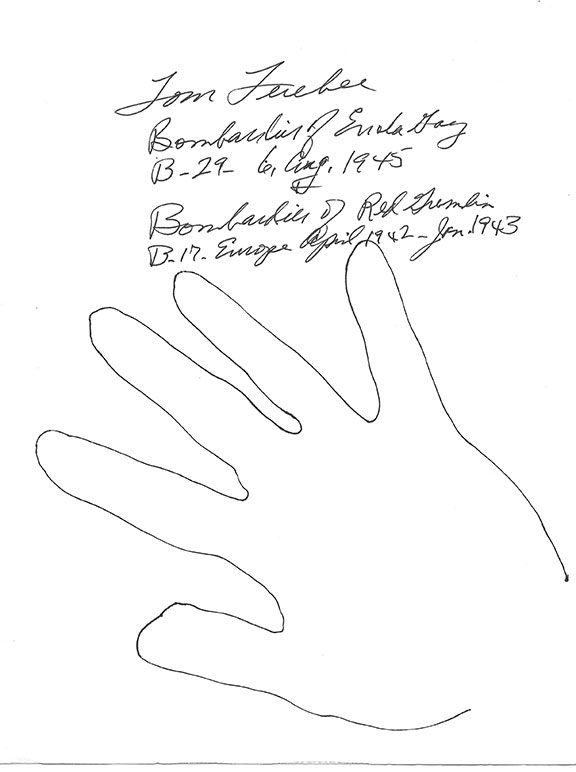 FEREBEE, Thomas W. (1918-2000). Bombardier on the Enola Gay. He released the lever that dropped the atomic bomb on Hiroshima. He has traced his right hand, the hand that dropped the atomic bomb on a 8.5”x11” sheet. He has written: “Tom Ferebee, Bombardier of Enola gay, B-29, 6 Aug.1945. Bombardier of red Gremlin B-17, Europe- April 1942-Jan 1943.” In very fine condition...........SOLD![]() |