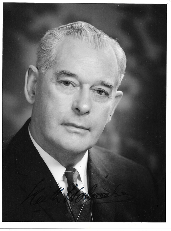 Holyoake, Sir Keith (1904-1983). 26th Prime Minister of New Zealand. Served briefly in 1957 and again from 1960 to 1972. Thirteenth Governor of New Zealand serving from 1977 to1980 and the only person to hold both positions. Photograph, B&W, 7”x9”, head and shoulders pose, looking directly into the camera, boldly signed.......... $65.00![]() |