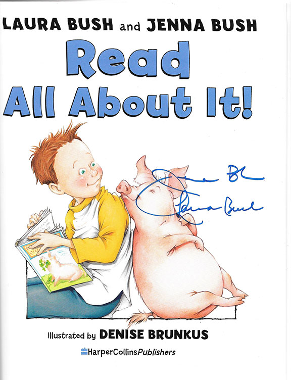 Signed by the First Lady & her Daughter BUSH, Jenna (1981- ) American news personality, the younger of twin daughters of George and Laura Bush. Their children’s book: “Read All About It.” Harper Collins Publisher, 2008 First Edition. Heavily illustrated in color. Signed on the title page by Jenna Bush & Laura Bush. In near mint condition with the dust jacket..............................$65.00 ![]() ![]() |
