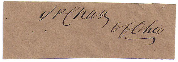 Salmon P. Chase, Secretary of Treasury, signature adding “Ohio”.