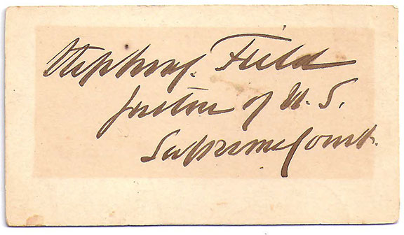 Stephen Field, Associate Justice, signature, “Justice US Supreme Court” in his hand.