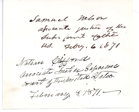 Nathan Clifford, Associate Justice, signature “Assoc. Justice Supreme Court, dated.