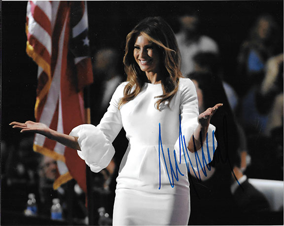TRUMP, Melania (1970- ) Married to Donald Trump 2005. Children, Barron Trump. MAPLES, Marla (1963- ) Married to Donald Trump 1993-1999). Children, Tiffany Trump. TRUMP, Ivana (1949- ) Married to Donald Trump 1977-1992). Children, Donald Trump, Jr., Eric Trump and Ivanka Trump. This collection consists of four 8”x10” photographs. Donald Trump, B&W, head & shoulders pose, full face, fabulous very early presentation inscription signed in gold ink with a uncommon full signature” “Norman, Thanks for your support!! With best wishes Donald J. Trump.” Melania Trump beautiful color photograph, three quarters pose in a stunning white dress flanked by the American Flag. Boldly signed using a blue ink Sharpie Pen with an “in person” signature. Marla Maples, wonderful color photograph of a flamboyant Marla dressed in a work out suit made by Everlast. Full length pose, signed with a gold ink pen. Ivana Trump, attractive color photograph, head & shoulders pose, full face signed “Ivana” using a black ink Sharpie Pen. All four photographs in very fine condition................................SOLD ![]() ![]() ![]() ![]() |