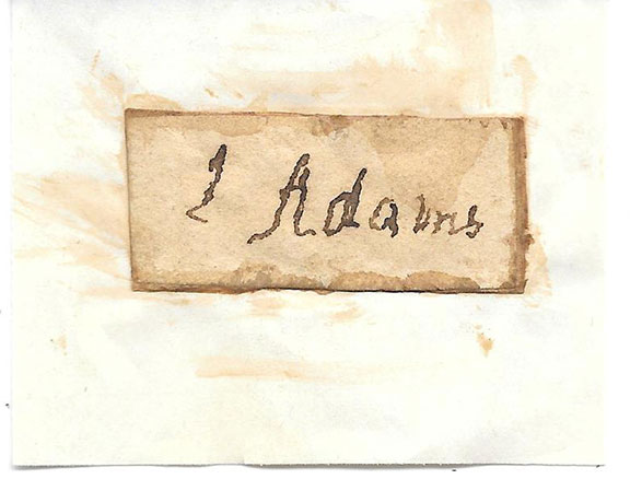 ADAMS, John (1735-1826) Second President of the United States. Very dark and bold old age signature on a slip affixed to a larger slip...........SOLD