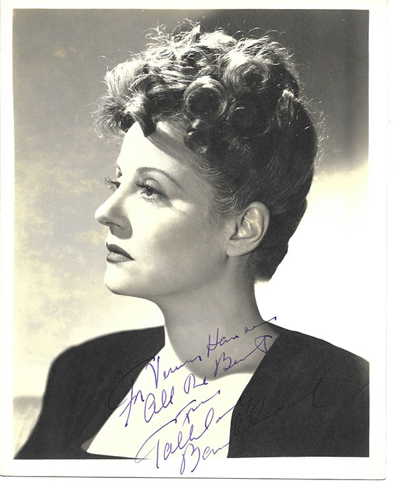BANKHEAD, Tallulah (1902-1968) American actress of the stage and screen. She had numerous lesbian affairs. She amassed over 300 film, stage, TV and radio roles. Vintage (circa late 30’s early 40’s) B&W head and shoulders profile portrait. Measures 8”x10” inscribed and signed: For Vernon Hansen, All the Best From Tallulah Bankhead”. In fine condition ..................$160.00![]() |