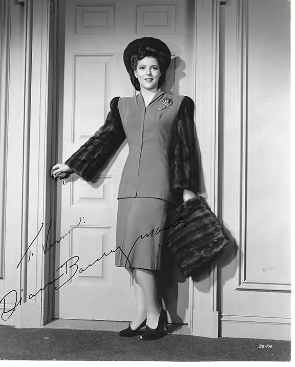 BARRYMORE, Diana (1921-1960). American film and stage actress. Daughter of John Barrymore. She was on the cover of Life Magazine in 1939. She was 1942’s most sensational new screen personality. Her early death was attributed to a drug overdose. Very uncommon vintage photograph, 7.5”x9”, full length pose dressed in a beautiful outfit. Inscribed: “To Vernon, Diana Barrymore”. In V/G-Fine condition ..................$195.00![]() |
