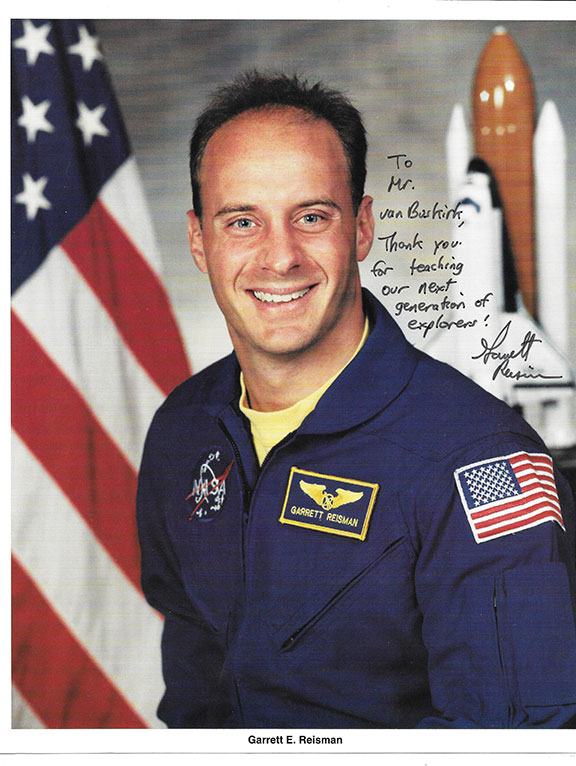 REISMAN, Garrett. Astronaut who threw the first pitch in the International Space Station for the Yankee game against the Red Sox. This was the first ceremonial pitch thrown from Space in Yankee history. He also carried dirt from the Yankee’s pitcher’s mound and a hat autographed by George Steinbrenner. Color photograph of Reisman in his flight jacket with a nice presentation inscription signed.