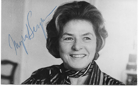 BERGMAN, Ingrid (1913-1982) Swedish actress, winner of three Academy Awards. Involved in the major sex-scandal of 20th Century Hollywood. A few she had affairs with were Spencer Tracy, Gary Cooper, Anthony Quinn, and Gregory Peck. Howard Hughes bought RKO as a present for her. Very nice head and shoulders portrait, smiling, B&W, 3.5”x5.5” and signed with a full perfect signature. Very fine/Mint condition.....................$325.00![]() |