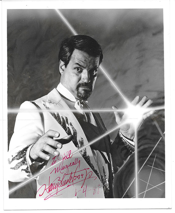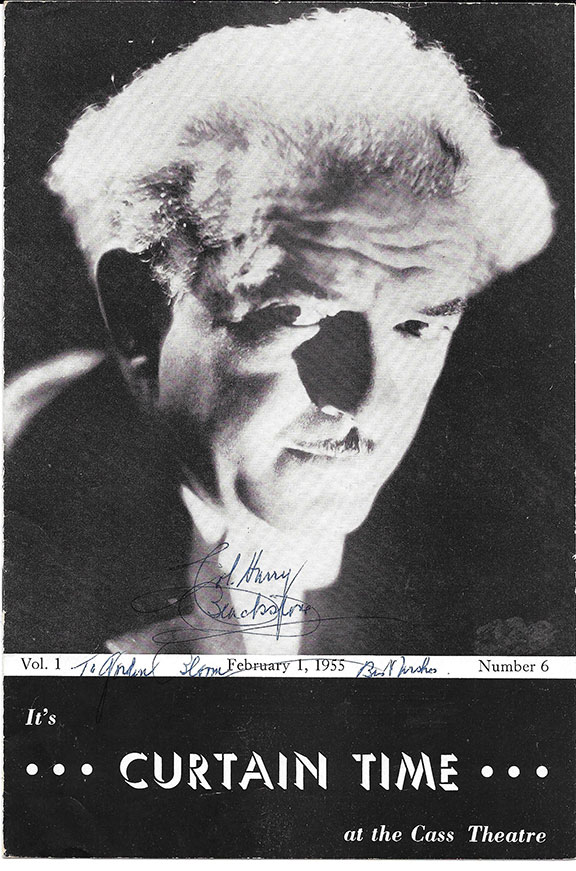 BLACKSTONE, Harry (1885-1965). Magician, during his lengthy career starting in Vaudeville before the turn of the century, he created many illusions including the “Indian Rope Trick” and “Vanishing Bird & Cage.” Very scarce “Playbill” from the Cass Theatre, Feb. 1955. “Blackstone The Magician”, the front cover bears a portrait of Blackstone, full face, which he has inscribed and signed. Together with a photograph of Harry Blackstone, Jr. 8”x10”, B&W, inscribed, signed and dated “6-4-88”. A wonderful combination.................................$275.00