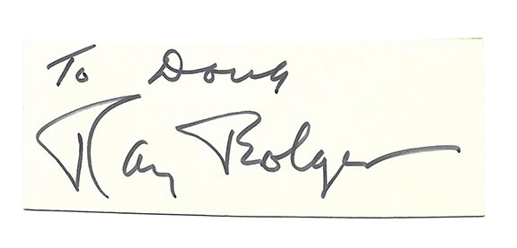 BOLGER, Ray (1904-1987). American actor best known for his part as “The Scarecrow” in the Wizard of Oz. Fine, large and bold signature inscribed “To Doug” on a slip......$110.00