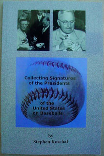 2012, First Edition, with comments by former President Jimmy Carter. One hundred and forty pages, heavily illustrated. This book provides information about baseballs signed by presidents of the United States that will be found nowhere else. Beginning with Theodore Roosevelt and ending with Barack Obama. No collector or dealer should purchase a baseball signed by a U.S. President before reading this book. A must book for the shelf of every one who authenticates autographs. Invaluable information is published for the first time that can save a potential collector many thousands of dollars. Each section is illustrated with most specimens from the author's personal library which is almost 50 years in the making. Shocking information in this book has already sent shock waves throughout the autograph industry and has caught the eye of law enforcement. Signed or inscribed and signed copies upon request...................................................$15.00