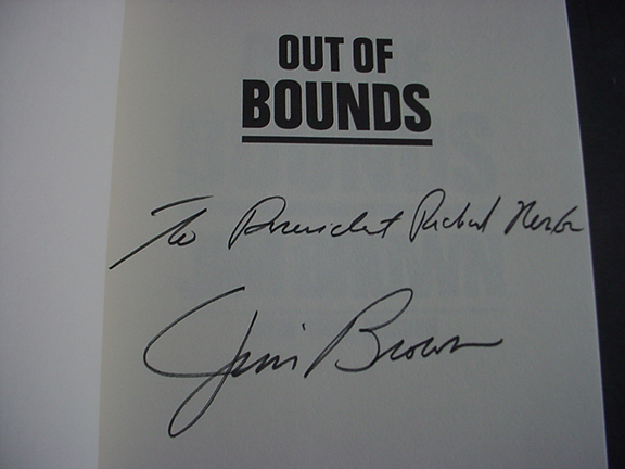Out Of Bounds Zebra Books, First printing, September 1989. Choice presentation inscription on the half title page: “To President Richard Nixon, Jim Brown”. In very fine condition with the dust jacket................................ $275.00
