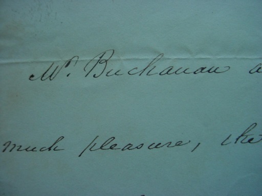 Autograph Letter Signed in the third person. "Mr. Buchanan accepts, with much pleasure, the invitation of General Towson to dinner, for Thursday next. Saturday morning 7 March '46." A fine example. $450.00