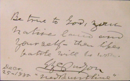 - Autograph Quote Signed, on a card, d. December 25, 1885 - Christmas Day