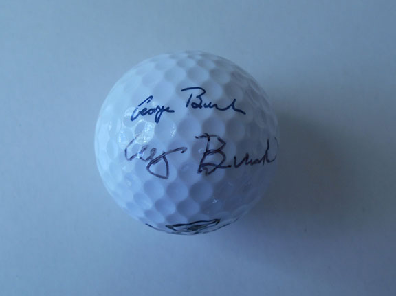 (1924- ) 41st president of the United States. 43rd Vice President of the United States. Nation’s oldest living president & vice president. George Bush Presidential Golf Ball bearing the colorful Presidential Seal and his printed signature. Below the printed signature George Bush has signed his name. Not common...................