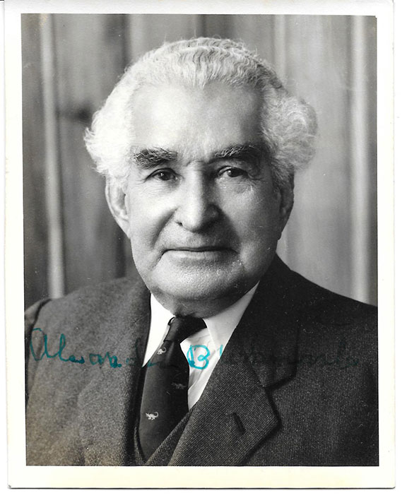 BUSTAMANTE, Rt. Excellent Sir Alexander (1884-1977). During 1937-38 there was much social unrest, Bustamante became the champion of the working class. He confronted the power of the colonial Governor. In Sept. 1940 he was detained for alleged violations of the Defense of the Realm Act and was released 17 months later. In 1943 he founded the Jamaica Labour Party with himself as head. Sir Bustamante became Jamaica’s first Prime Minister in 1962. Photograph, B&W, head & shoulders pose, 4”x5” Signed in green ink. Fine condition.....$85.00