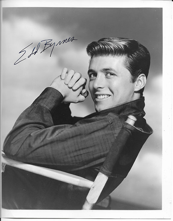 BYRNES, Ed (Kookie) Actor, he played the part of a parking attendant on 77 Sunset Strip. Byrnes and Connie Stevens recorded a hit single Kookie, Kookie Lend Me Your Comb. It sold over a million records. Attractive vintage photograph half length pose sitting in chair smiling. B&W, 8”x10”, boldly signed. In fine condition.........$40.00![]() |