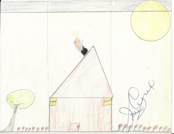 CAGNEY, James (1899-1986). American actor and dancer. Known for playing tough guy roles. He is listed as #8 as one of the greatest male stars of the Golden Age. Cagney won an Academy Award for Yankee Doodle Dandy (1943). Ronald Reagan as President delivered the eulogy at Cagney’s funeral. Original crayon art work in color of a house, tree, sun and blue sky. It is reported that Cagney crudely drew this item for a young boy that was hospitalized in Philadelphia. Boldly autographed by Cagney with a huge signature. He used a ball point pen. Most likely unique.........$195.00
