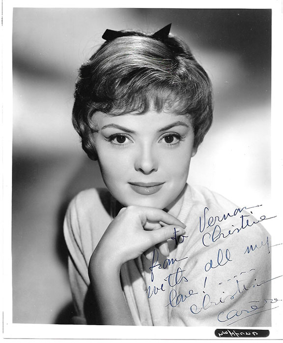 CARERE, Christine (1930-2008). French film actress, author. Vintage photograph, head and shoulders pose, full face. Inscribed and signed: “To Vernon from Christine with all my love! Christine Carere.” In fine condition...........$55.00![]() |
