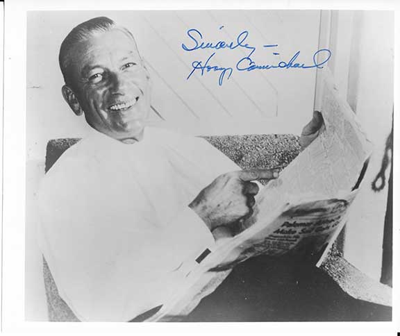 CARMICHAEL, Hoagy (1899-1981) Pianist, composer of over 700 songs including “Stardust”, “Georgia on My Mind” and “Heart and Soul”. He was one of the most successful Tin Pan Alley songwriters of the 1930’s. Carmichael was also a character actor in 14 films. Photograph, 8”x10” of the smiling composer. Choice signature adding a one-word sentiment. Very fine to mint condition..........$195.00![]() |