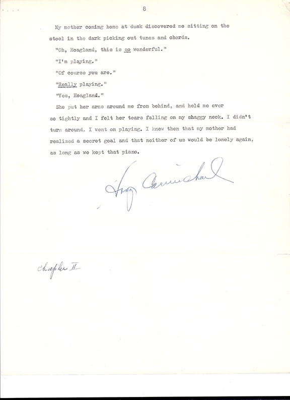 CARMICHAEL, Hoagy (1899-1981). American composer. Best noted for “Stardust”, “Georgia On My Mind”. Typescript, eight typed pages from his Autobiography “Sometimes I Wonder”. Very interesting typescript, in very good condition, boldly signed in full after the text on page eight. Very unusual as such ............................................$200.00