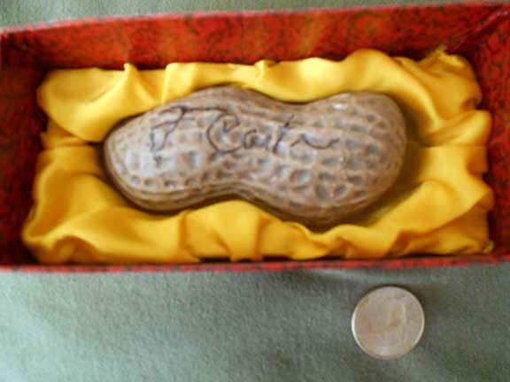 CARTER, Jimmy (1924- ) 39th President of the United States. Peanut farmer. Very unusual large (3.5”) imitation peanut, hand signed “J. Carter.” Encased in an attractive presentation box. Wonderful display item..............SOLD![]() |