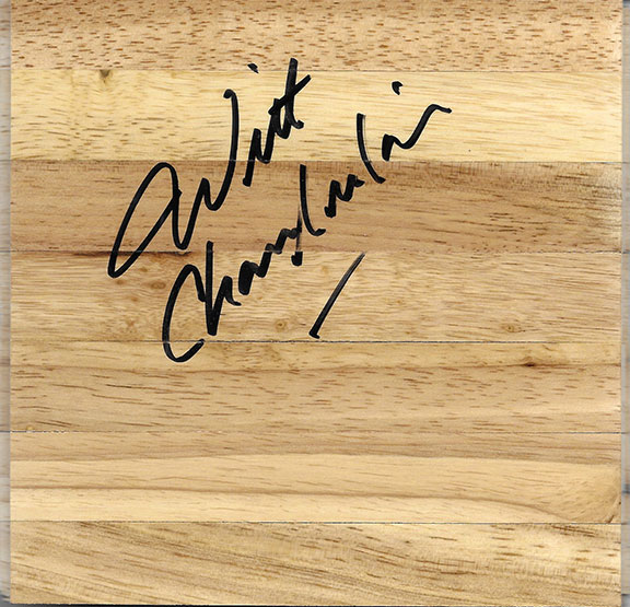 CHAMBERLAIN, Wilt (1936-1999) American professional basketball player. He holds 72 NBA records. Inducted into the Hall of Fame (1978). Laker’s Court floor board, hardwood flooring measures 6”x6” from the Forum, Inglewood, CA, the original home of the Los Angeles Lakers. Very boldly signed by Wilt Chamberlain with a huge signature...........................$1750.00![]() |
