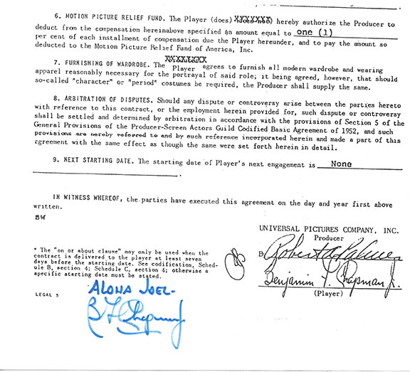 CHAPMAN, Ben (1925-2008) actor, he was the ideal choice for the title role in “The Creature From The Black Lagoon.’’ Chapman was the creature when the camera is out of the water. Copy of  his contract to play Gill Man in “The Creature From The Black Lagoon.”  Chapman has signed: “Aloha Joel, B.F. Chapman Jr.”  In fine condition.........$55.00