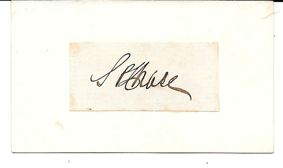 CHASE, Salmon P. (1808-1873). Elected to the Senate in 1849 on the Free Soil ticket and led the formation of the Republican party. He was a vehement opponent of slavery. He was elected governor of Ohio in 1855 as a Republican and became Lincoln’s Secretary of the Treasury in 1861. Lincoln appointed him Chief Justice of the U.S. Supreme Court in 1864 where he served as Chief Justice until 1873. A fine dark bold signature on a slip affixed to a larger slip....................$117.50