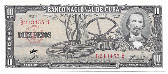 CHE GUEVARA. Ernesto Guevara de la Serna (1928-1967). Argentine revolutionary leader, trained as a doctor. Marxist guerilla who aided Castro’s Cuban revolution in 1959. He rallied other third world countries to overthrow their corrupt regimes. He was President of the Banco Nacional de Cuba. He left Cuba in 1965 to become a guerrilla leader in South America. He was captured in 1967 during a campaign in Bolivia. He was executed by firing squad. He was transformed into a martyr. Cuban 10 pesos Note, Banco Nacional De Cuba, 1960, printed signature of Che as President Del Banco. Above his printed signature he has personally signed his name using a black ink pen. Very scarce as such as only a few of these notes have appeared for sale. Note and signature in uncirculated condition ..............$1,550.00