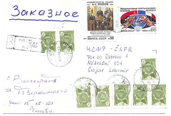 CHISLOV, Alexandr USSR Fighter pilot during WWII. Ace credited with 21 victories. Hero of the USSR (1943). Attractive envelope with ten Russian postage stamps all hand cancelled. Addressed to a Czechoslovakia dealer. Chislov has signed his name and has written his return address. A colorful cover in very good condition..........................$125.00![]() |