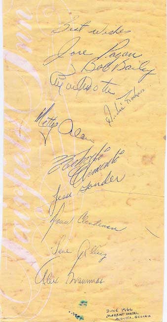 Inn stationary, Atlanta, Georgia, with the signatures of nine