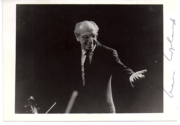 COPLAND, Aaron (1900-1990). American composer. Won the Pulitzer Prize in Music (1945) for “Appalachian Spring.” Photograph, 5”x7”, oblong, half length pose of Copland while conducting. Signed in full on the right, white border. In fine condition....... $250.00 |